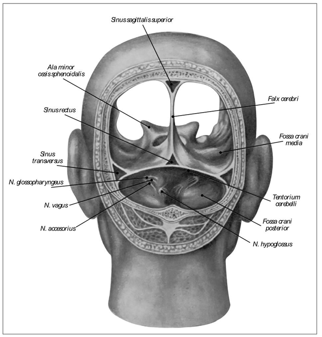 CSS is a physiological semi-closed system located in the dura mater that surrounds the brain and the spinal cord (Fig. 1, 2). Its primary function is the production, circulation, and reabsorption of the cerebrospinal fluid (CSF). It exhibits its own, physiological activity called the craniosacral rhythm. This activity consists in rhythmical expansion and contraction of the whole system to allow the pressure inside to be regulated. This movement can be palpated by a CST practitioner anywhere on a patient’s body and it provides information about any restrictions within the dural membranes and/or the fascia. The intracranial membrane system constitutes an important element of the whole CSS. Any tension or asymmetry within the intracranial membrane system can affect the mobility, symmetry, and amplitude of the movement of cranial bones in relation to each other, which is an important factor in developing dysfunctions that are common in dental practice. These dysfunctions may provoke symptoms like tooth ache, TMJ pain, and other signs and symptoms of the viscerocranium having no apparent organic cause.
