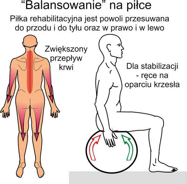 Człowiek w swoim naturalnym środowisku wykonywał pracę różnych partii mięśni z odpowiednią częstotliwością. W obecnym środowisku występuje deficyt pewnych ruchów, najbardziej – naturalnych wychyleń kręgosłupa. Dlatego przy każdej możliwej okazji należy je uzupełniać. Bardzo prostym urządzeniem służącym do tego jest nadmuchiwany krążek gumowy. Dostępny w aptekach lub sklepach medycznych jako „krąg połogowy” albo „krąg przeciwodleżynowy”, może być stosowany jako nakładka na krzesło. Nie wiem, czy robić to w pracy (pacjent może być zdziwiony), ale na pewno w domu, podczas oglądania telewizji czy przy komputerze, można się trochę „pokiwać” dla zdrowia.