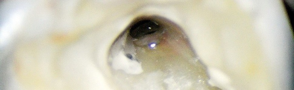 Osuszenie ujścia kanału podniebiennego za pomocą kulki z waty, a następnie kanału perforacyjnego za pomocą sączka papierowego; na szczycie sączka widoczna krew.