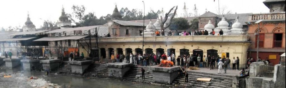 Widok z drugiego brzegu rzeki Bagmati na świątynię Paśupatinath wraz z licznymi ghatami służącymi do kremacji zmarłych. Po odbytej ceremonii biedniejsi mieszkańcy przeczesują dno rzeki w nadziei na wyłowienie cennych pozostałości po zmarłych.W okolicach świątyni można spotkać licznych pielgrzymów z Nepalu i Indii, malowniczych sadhu, zaklinaczy węży czy sędziwych starców, którzy przybyli tu i czekają, by zakończyć swoje życie w świętym miejscu. Nepalczycy upodobali sobie też Paśupatinath jako miejsce spacerów, poznawania kultury hinduizmu i refleksji nad przemijaniem. Nie jest to dla nich miejsce smutne. Wszyscy, zarówno bliscy osoby zmarłej, jak i spacerowicze są ubrani w normalne, kolorowe stroje. Z jednej strony widać palące się ciała, a tuż obok mija się śmiejących się ludzi, uliczny punkt fryzjerski czy budki z napojami i ozdobami. Świadczy to, że śmierć jest tu tylko kolejnym etapem życia.