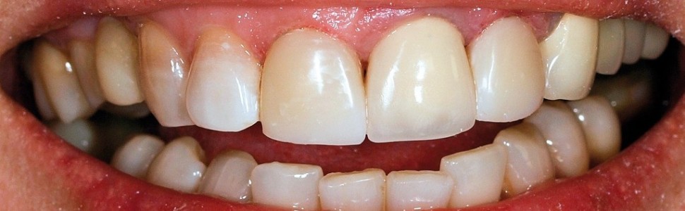 This is an example of use of one of the available composite materials, illustrating the clinical uses of composite material characterised by low tranparency.