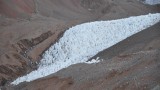 Naszym celem było dojście do III obozu. Do góry wyruszyło 6 osób; dwie musiały zostać w II obozie ze względu na złe samopoczucie. Niestety, nie doszliśmy do końca. Kolejne dwie osoby gorzej się poczuły, a do tego zaczął padać śnieg, na co nie wszyscy byli przygotowani. Po tym dniu zaczęłam mieć rozterki, czy my, czy ja dam radę… skoro nie doszliśmy do III obozu… tylko trzy osoby czuły się dobrze… kiedy mnie coś dopadnie? Wtedy czułam się znakomicie i wolałam iść wyżej w celu lepszej aklimatyzacji, ale byliśmy przecież grupą … zawróciliśmy wszyscy. Zeszliśmy do bazy jakimś skrótem, po którym następnego dnia miałam zakwasy, bo było stromo i trzeba było hamować, aby nie zsuwać się po piargu. W bazie byliśmy w poniedziałek 25 stycznia. Z dwóch różnych źródeł dotarły do nas informacje o pogodzie – okno pogodowe mieliśmy mieć do czwartku, tego dnia po południu miało już wiać 55 km/h, a potem – być coraz gorzej. Zaczęliśmy więc analizować naszą sytuację. W głowie mi się mieszało, bałam się o niewystarczającą aklimatyzację. Po jednym dniu odpoczynku ruszyliśmy z powrotem do II obozu. Niby lżej, ale plecak wcale nie był lekki – w nim śpiwór, ciężkie buty plastikowe i niezbędny gaz. Ale szło się znacznie szybciej. Czas w obozie płynął przy gotowaniu wody. W nocy wiało tak, że aż szarpało namiotem. Rano, z powodu silnego wiatru, opóźniliśmy wyjście o godzinę. Nasze plecaki znów były ciężkie, ale było w nas dużo optymizmu – świeciło słońce i wiatr się uciszył.