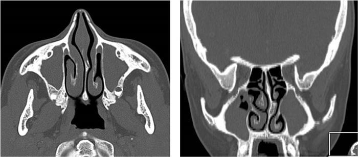 Diagnostyka obrazowa zatok staje się coraz bardziej istotna dla lekarzy dentystów, którzy posiadają w swoich gabinetach aparaty tomografii stożkowej (CBCT). W zależności od wielkości pola obrazowania w CBCT są widoczne fragmenty zatok szczękowych aż po całe zatoki szczękowe, a w badaniach o największym polu obrazowania wszystkie zatoki oboczne nosa, podobnie jak w badaniu medycznej tomografii komputerowej (TK). Z tego względu celem pracy jest przedstawienie najważniejszych zmian patologicznych zatok szczękowych, z którymi może się spotkać lekarz stomatolog, opisując badania tomografii stożkowej (CBCT).
