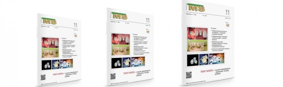 Bogaty jest również listopadowy numer „MS”. Tematem miesiąca jest LECZENIE IMPLANTOLOGICZNE. Zagadnienie to przedstawiają trzy prace dr Beaty Śmielak dotyczące planowania leczenia implantologicznego, postępowania chirurgicznego i procedur protetycznych. Całości dopełnia artykuł Magdaleny Jaszczak-Małkowskiej, Bartłomieja Górskiego i Renaty Górskiej o uzupełnieniach opartych na implantach w odcinku przednim. W dziale STOMATOLOGIA PRAKTYCZNA zamieściliśmy natomiast m.in. publikację prezentującą odbudowę pośrednią zęba trzonowego żuchwy z użyciem nakładu oraz pracę przedstawiającą postępowanie w przypadku urazów w uzębieniu mlecznym. W dalszej części numeru uwagę przykuwa fotoreportaż kliniczny dotyczący odbudowy jamy kostnej granulatem allogennym. Jak zawsze, pod koniec numeru omówienie artykułu z piśmiennictwa światowego. Tym razem jest to praca opisująca uszkodzenie zębów stałych w wyniku urazu w uzębieniu mlecznym.