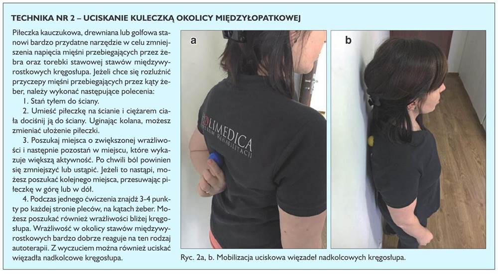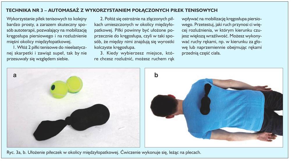 Powyżej przedstawiamy ćwiczenia, które w różny sposób korzystnie wpływają na normalizację napięcia tkanek miękkich w okolicy piersiowej. Warto pamiętać, że dbając o kręgosłup piersiowy, wpływa się na funkcjonowanie całego układu wegetatywnego.