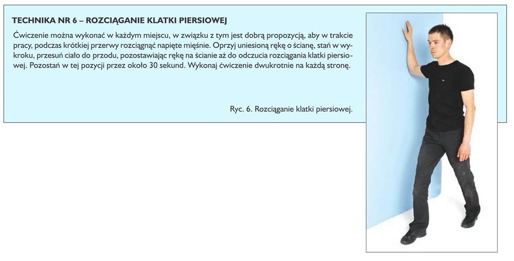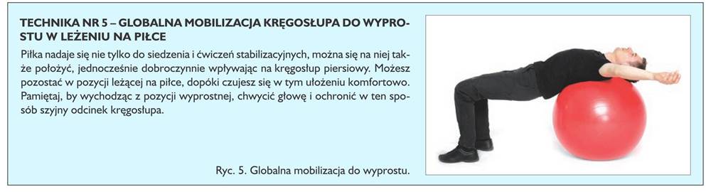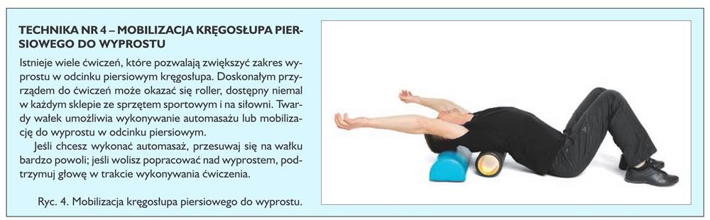 Oczywiście żadne ćwiczenia nie dadzą efektów, jeśli nie będą wykonywane systematycznie. Dotyczy to również technik normalizujących napięcie w kręgosłupie piersiowym, takich jak ćwiczenia z aktywnym wyprostem wykonywane na piłce lub na rollerze, służące zniwelowaniu przeciążeń wywołanych pracą w chronicznym nadmiernym zgięciu w tym odcinku. Powinno się ćwiczyć nie tylko w domu czy na siłowni. Warto zrobić sobie także przerwę w czasie pracy, aby aktywnie rozciągnąć klatkę piersiową, co zwiększy tolerancję na przeciążenia w tym rejonie ciała.