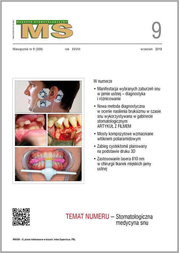 tematem miesiąca wrześniowego numeru „Magazynu Stomatologicznego” jest STOMATOLOGICZNA MEDYCYNA SNU. Dział ten został przygotowany pod przewodnictwem naukowym Pana dr. hab. Mieszka Więckiewicza, kierownika Katedry i Zakładu Stomatologii Doświadczalnej Uniwersytetu Medycznego im. Piastów Śląskich we Wrocławiu. Poza artykułami dotyczącymi diagnostyki i różnicowania patologii snu (bruksizm, bezdech senny) znajdą w nim Państwo także publikację dotyczącą neurobiologicznej koncepcji działania deprogramatorów przednich.