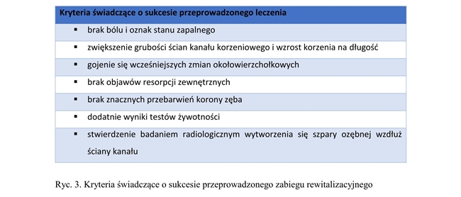 W przypadku braku efektów wskazujących na powodzenie zabiegu rewitalizacyjnego należy rozważyć przeprowadzenie tradycyjnego leczenia endodontycznego.