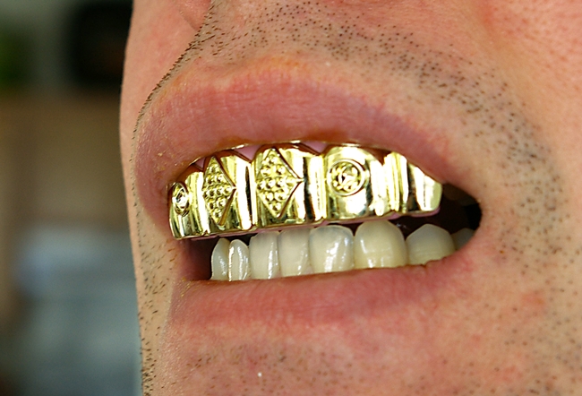 Ryc. 3. Biżuteria typu grill obejmująca zęby przednie szczęki.