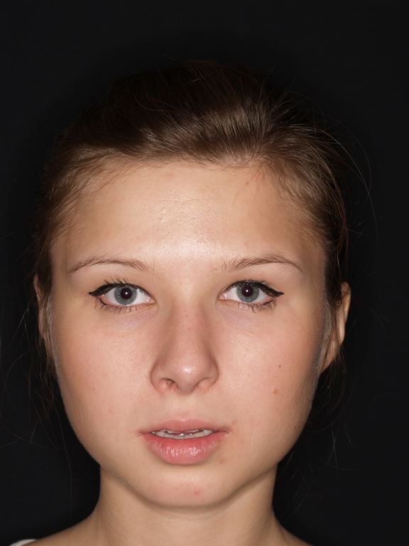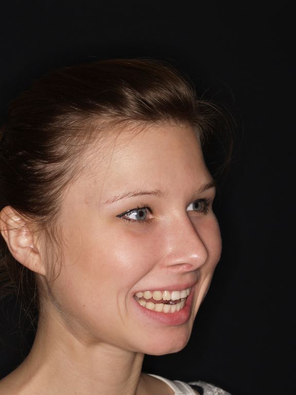 Analiza fotografii twarzy wykazała, że jej proporcje pozwalały na podniesienie PWZ, linia brzegów siecznych zębów górnych wymagała niewielkiej korekty w kierunku dokoronowym, dla zachowania prawidłowych proporcji zębów wskazane było wydłużenie koron klinicznych i przesunięcie zenitów dziąsłowych w kierunku dowierzchołkowym.