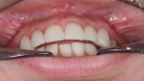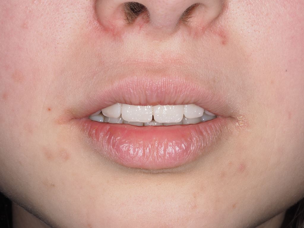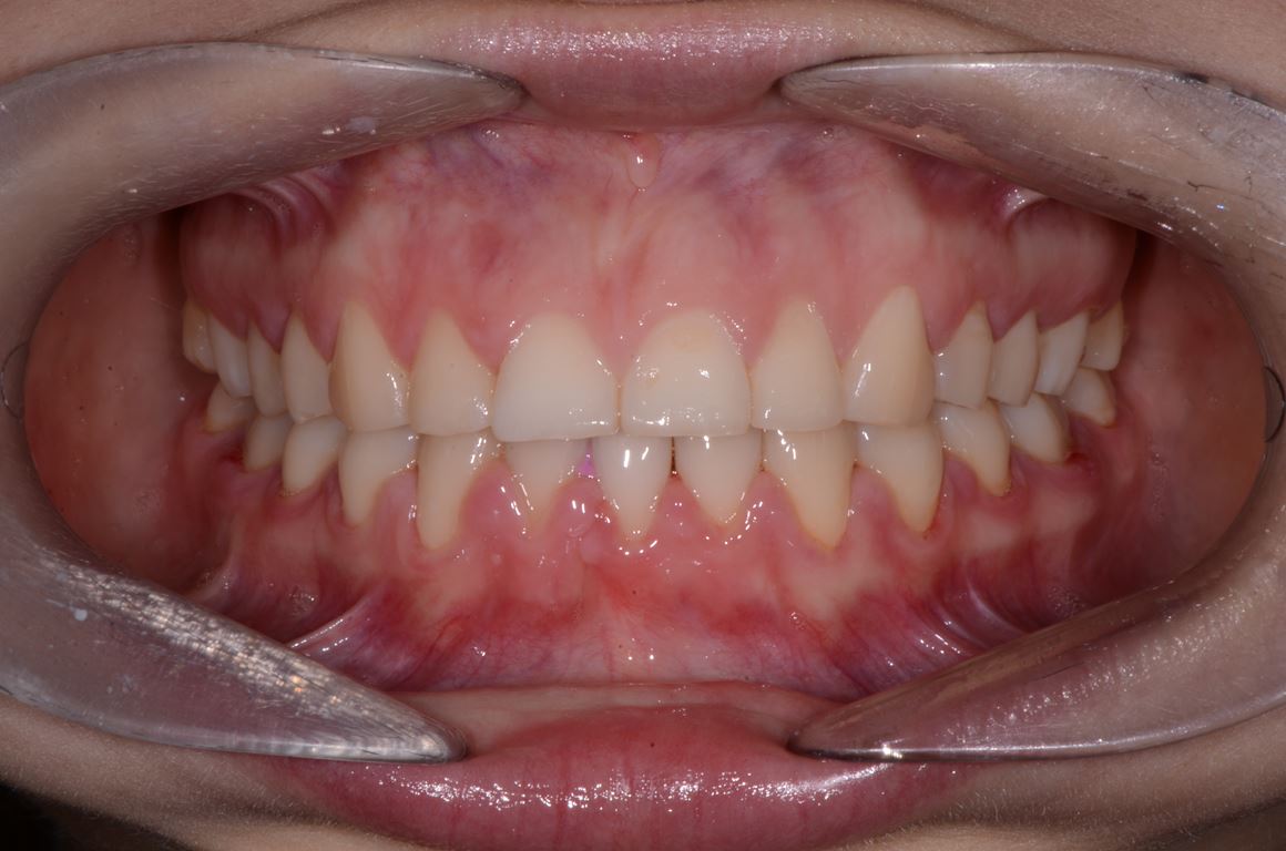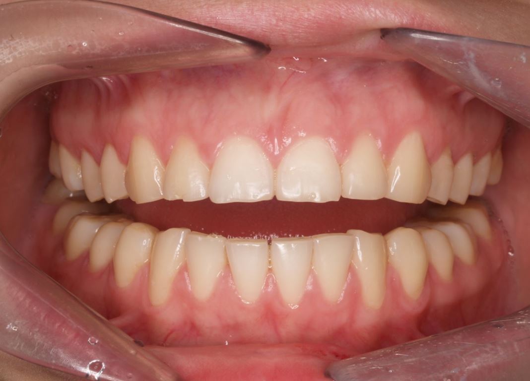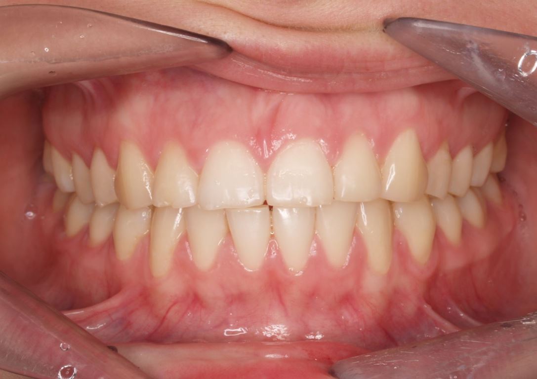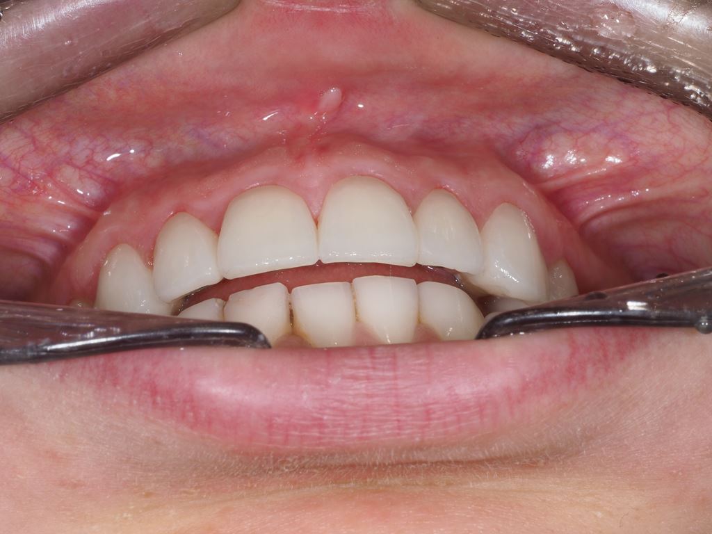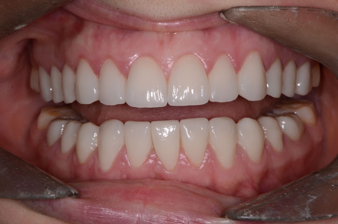 Pacjentka 21-letnia zgłosiła się do gabinetu, zaniepokojona znacznym starciem zębów. W wywiadzie podała nocne zgrzytanie zębami. Niedawno zakończyła leczenie ortodontyczne, którego celem, zgodnie z uzyskanymi od niej informacjami, miało być rozwiązanie problemu nadmiernie ścierających się zębów – nie przyniosło ono jednak spodziewanych rezultatów. Obecnie pacjentka oczekiwała przede wszystkim poprawy estetyki uśmiechu przez wydłużenie zębów przednich i zabezpieczenie ich przed pojawiającymi się odpryskami szkliwa oraz rozwiązania problemu uogólnionej nadwrażliwości.