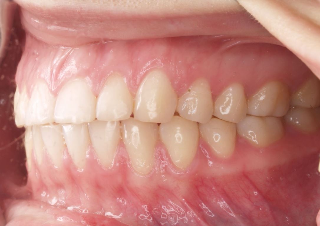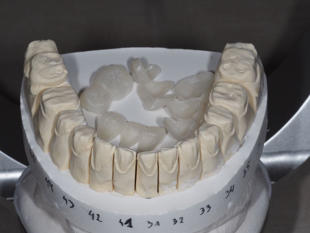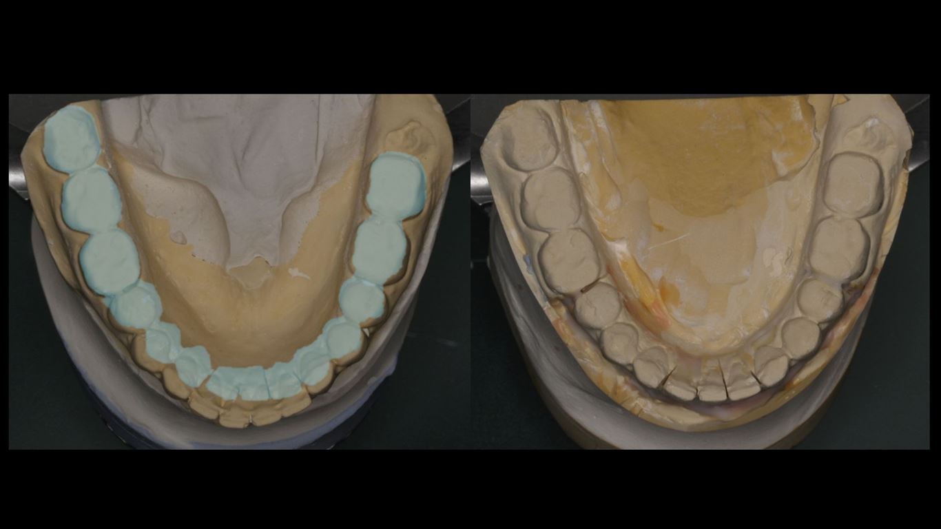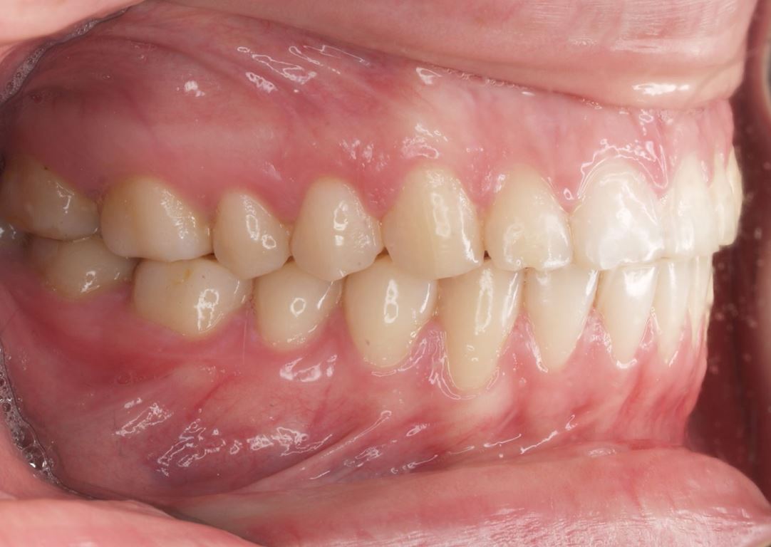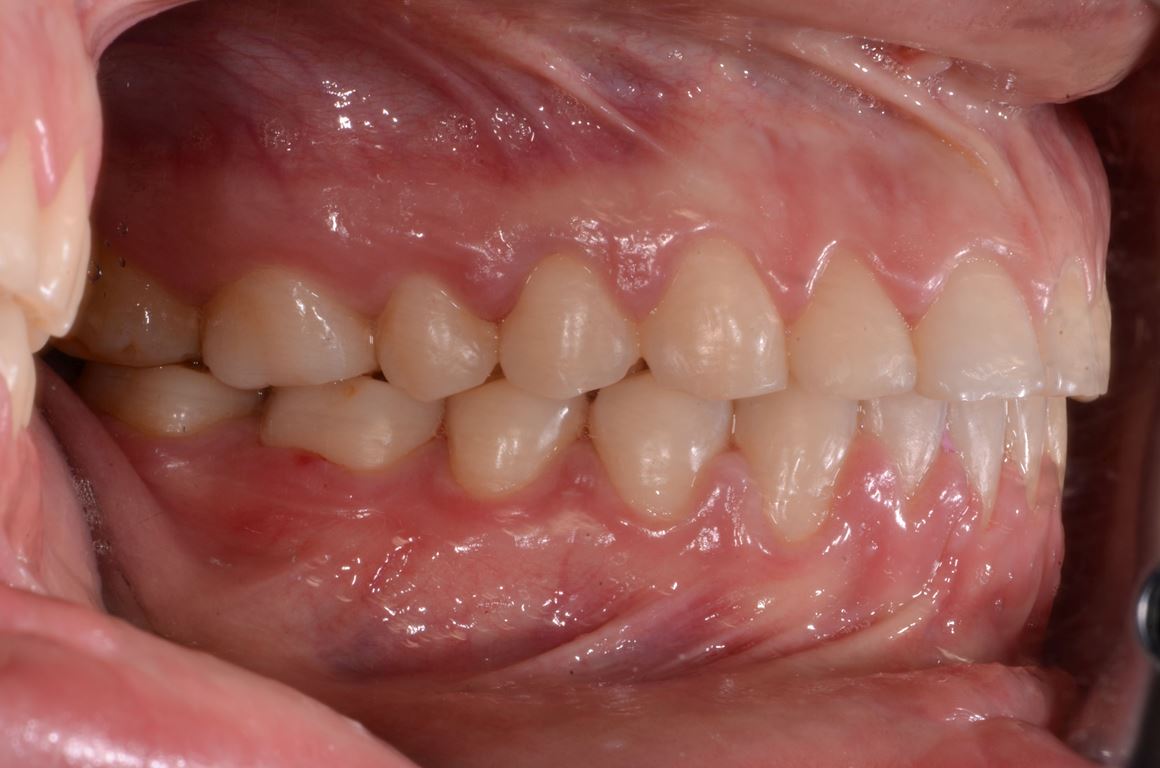Drugie zęby trzonowe nie zostały włączone w rekonstrukcję pomimo znacznej utraty wysokości koron. Dzięki temu podniesienie wysokości zwarcia mogło być zminimalizowane oraz uniknięto konieczności preparacji zniszczonych powierzchni zwarciowych tych zębów. Po przebudowie warunków zwarciowych na pozostałych zębach uzyskano prowadzenie przednie i kłowe, co potencjalnie dało ochronę zębów trzonowych przed destrukcyjnymi siłami bocznymi.