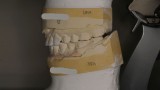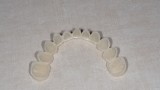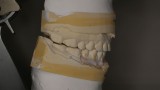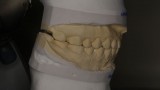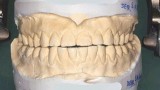 Następnie, po okresie stabilizacji i wstępnej korekcie okluzji, na podstawie analizy nowego kompletu zdjęć i modeli, wykonano woskowanie diagnostyczne oraz mock-up górnego łuku zębowego mający na celu potwierdzenie ostatecznego kształtu zębów i zakresu niezbędnego przygotowania chirurgicznego (ryc. 25-27).