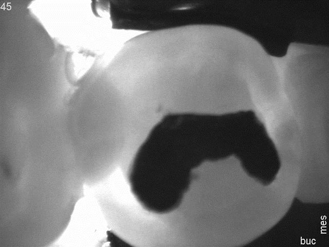Ryc. 10. Ząb 45 z częściowo opracowanym ubytkiem próchnicowym kl. II D.