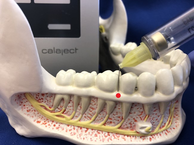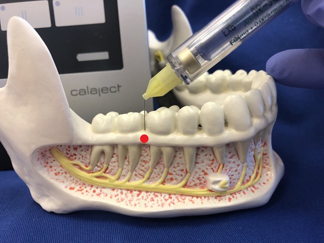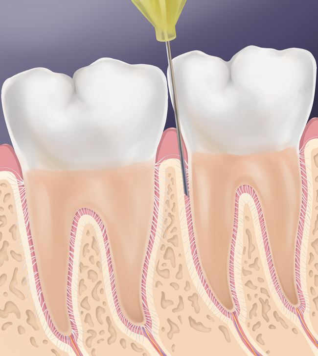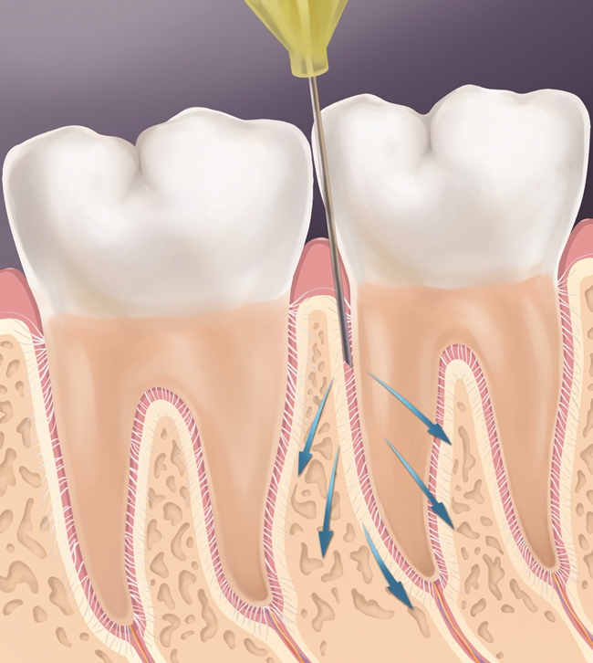 Wytworzenie odpowiedniego ciśnienia anestetyku umożliwia przenikanie płynu przez otwory w kości zębodołu. Kość otaczająca korzenie zębów z obecnymi w niej niewielkimi otworami stanowi barierę. Jeśli płyn jest podawany pod odpowiednim ciśnieniem w sposób stały oraz z niewielką prędkością, to przemieszcza się w obrębie otworów i przenika przez kość.