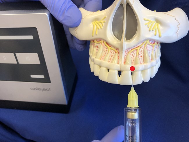 Podczas iniekcji powinien się pojawiać delikatny opór stawiany przez tkanki oraz widoczne anemizacja/zbielenie dziąsła w miejscu wkłucia.