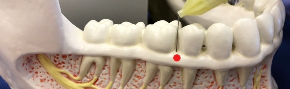 Deponujemy 0,2 ml roztworu znieczulającego na korzeń zęba. W ciągu 20 sekund w każdym miejscu deponujemy 0,2 ml, upewniając się, czy występuje zbielenie. Podanie większej ilości środka nie zwiększa skuteczności znieczulenia!