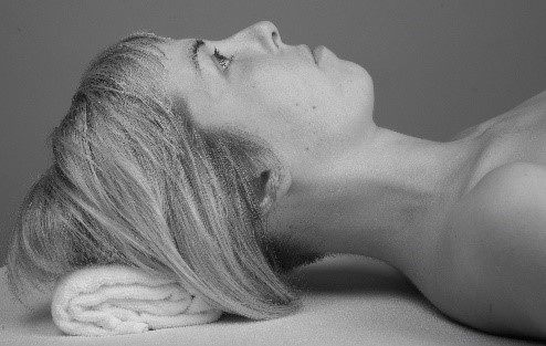 Ryc.7.Technika mobilizacji biernej własnej przejścia głowowo-szyjnego w leżeniu na wałku do skłonu głowy w przód.