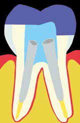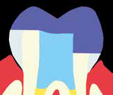 Ryc. 3. Endokorona.Endokorona jest szczególnym rodzajem wypełnienia pośredniego, który przy dużej utracie tkanek korony zęba nie wymaga osadzenia w kanale korzeniowym wkładu z włókna (ryc. 3). Polecana jest do odbudowy zębów trzonowych, co wiąże się z anatomią tych zębów, pozwalającą uzyskać mechaniczną retencję poprzez zakotwiczenie w komorze, wykorzystując jej wielkość oraz ujścia kanałów korzeniowych. Ponadto szerokość zębów trzonowych powoduje, że siły wyważające, które na nie działają mają mniejszą wartość niż w przypadku zębów przedtrzonowych (9, 10). Jest to zatem monolityczna odbudowa, która jednocześnie wypełnia komorę zęba i odbudowuje jego koronę.