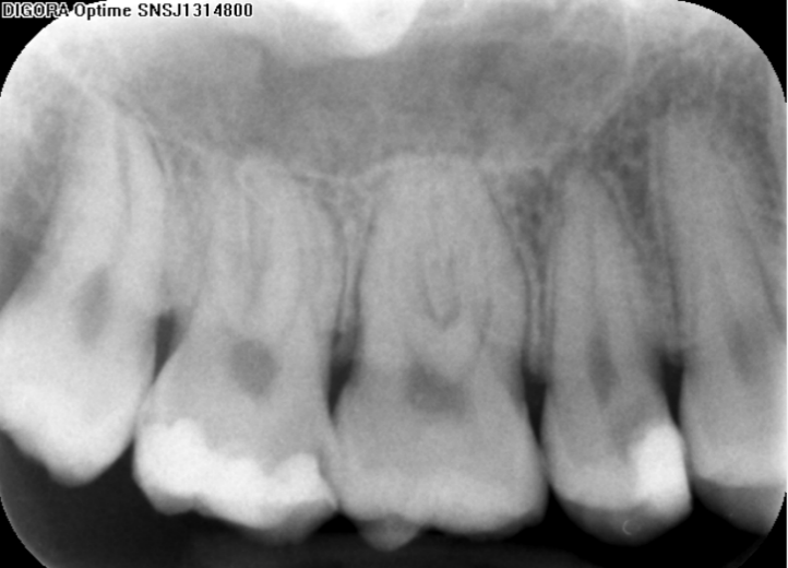 Zasadnicze pytanie, jakie zadał Czytelnik brzmi: „Czy należało w takim wypadku wdrożyć typowe leczenie kanałowe?”. Odpowiedź na to pytanie jest zdecydowanie przecząca. Co więcej wdrożenie typowego leczenia polegającego na wyłuszczeniu miazgi, czy co gorsza zastosowaniu preparatu dewitalizującego, byłoby błędem sztuki. Nawet w przypadku, gdyby hipotetycznie doszło do odsłonięcia w obrębie zębiny próchnicowej, nie należałoby wdrażać leczenia kanałowego. Postępowanie w takim przypadku polega bowiem na usunięciu tkanki próchnicowej w powiększeniu, dezynfekcji ubytku i miazgi podchlorynem sodu i założeniu na dno ubytku cementu krzemowo-wapniowego. Oczywiście zawsze trzeba brać pod uwagę wykonanie amputacji częściowej lub całkowitej.