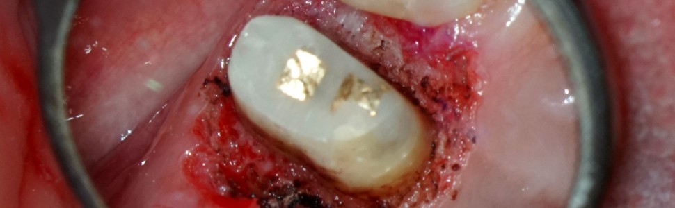 Biorąc pod uwagę powyższe, trudności należałoby spodziewać się już na etapie usuwania wypełnienia w postaci zniszczenia tkanek chorobą próchnicową poniżej poziomu dziąsła (ryc. 3). W klasycznym podejściu dokonując gingiwektomii, mógłby pojawić się problem z kontrolą krwawienia i izolacją ubytku, co skutkowałoby koniecznością tymczasowego zaopatrzenia ubytku do następnej sesji i wygojenia dziąsła, generując przejściowy defekt estetyczny oraz zwiększając dodatkowo ryzyko urazu mechanicznego znacząco już osłabionego zęba.