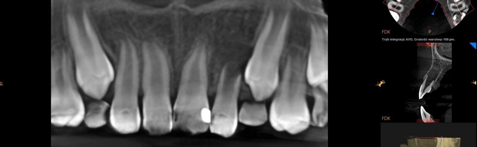 Hasła indeksowe: niezakończony rozwój korzenia, wodorotlenek wapnia, MTA, tomografia komputerowa wiązki stożkowej, mikroskop operacyjny