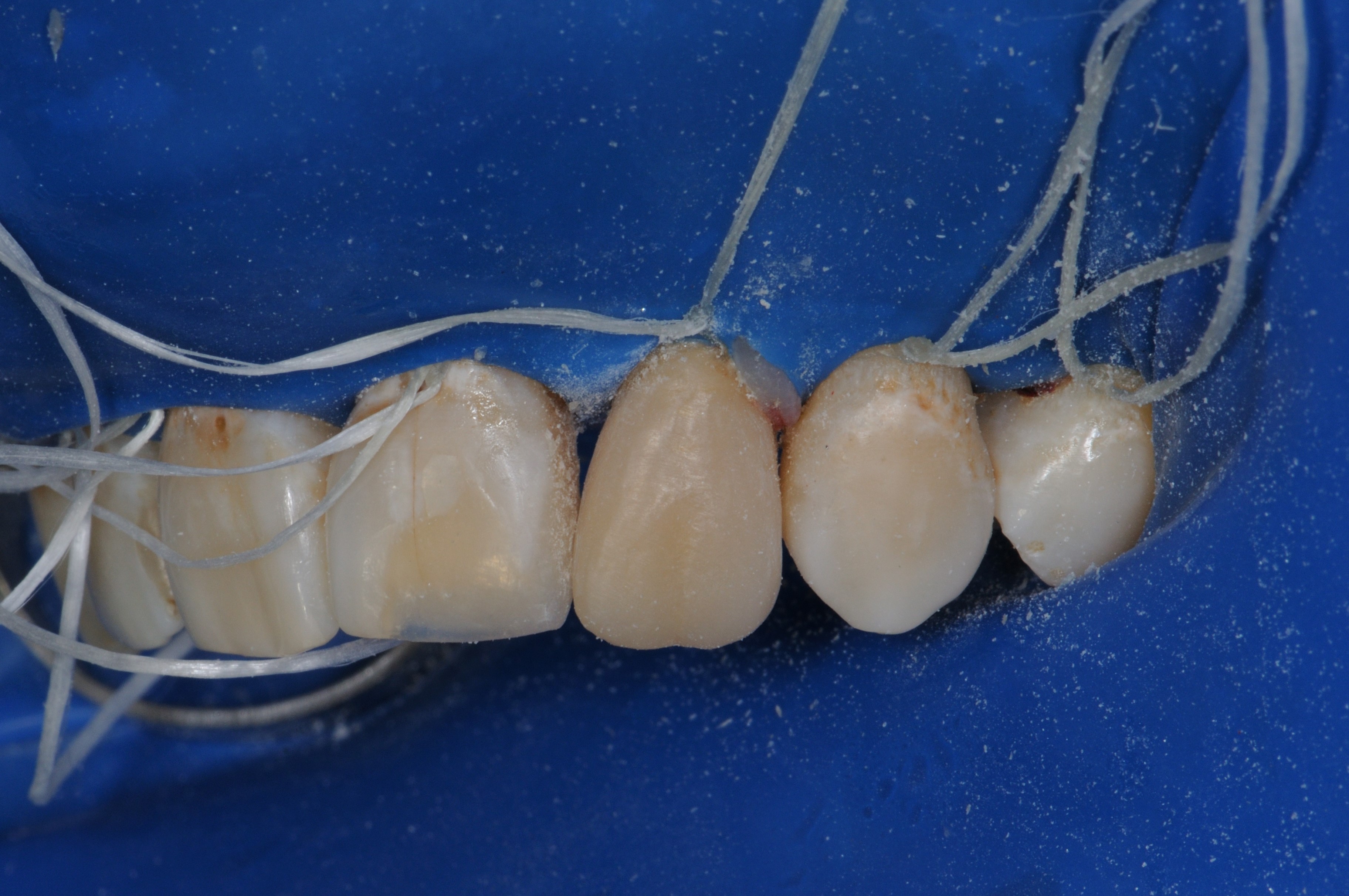 Ryc. 7. Zacementowany wkład z włókna szklanego, ściana podniebienna odbudowywana na indeksie silikonowym.