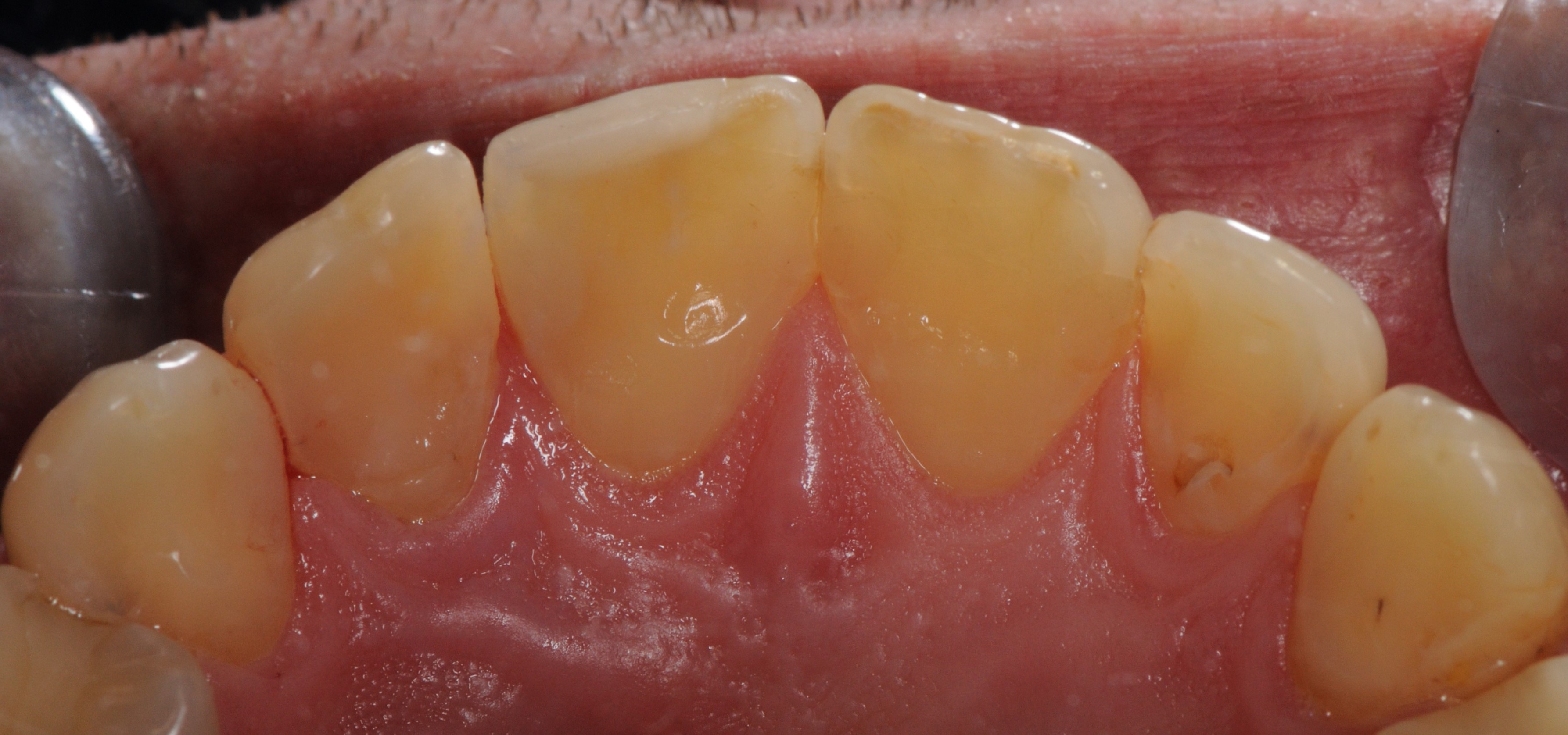 Ze względu na konieczność odroczenia postępowania protetycznego i dużą różnicę w kolorze zębów (ryc. 13) pacjent został poinformowany o konieczności umówienia się na kolejną wizytę w celu kontroli wykonanej odbudowy.
