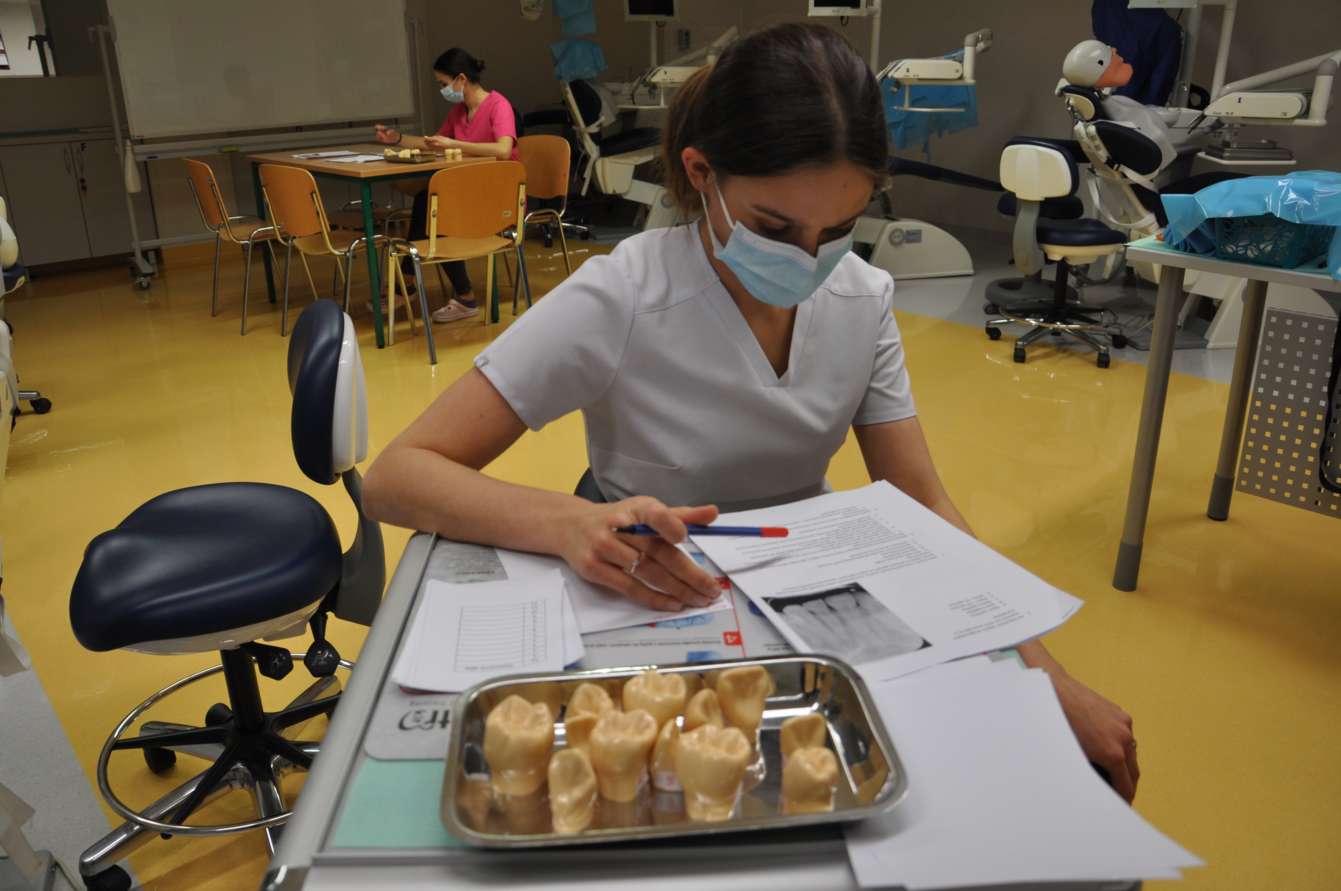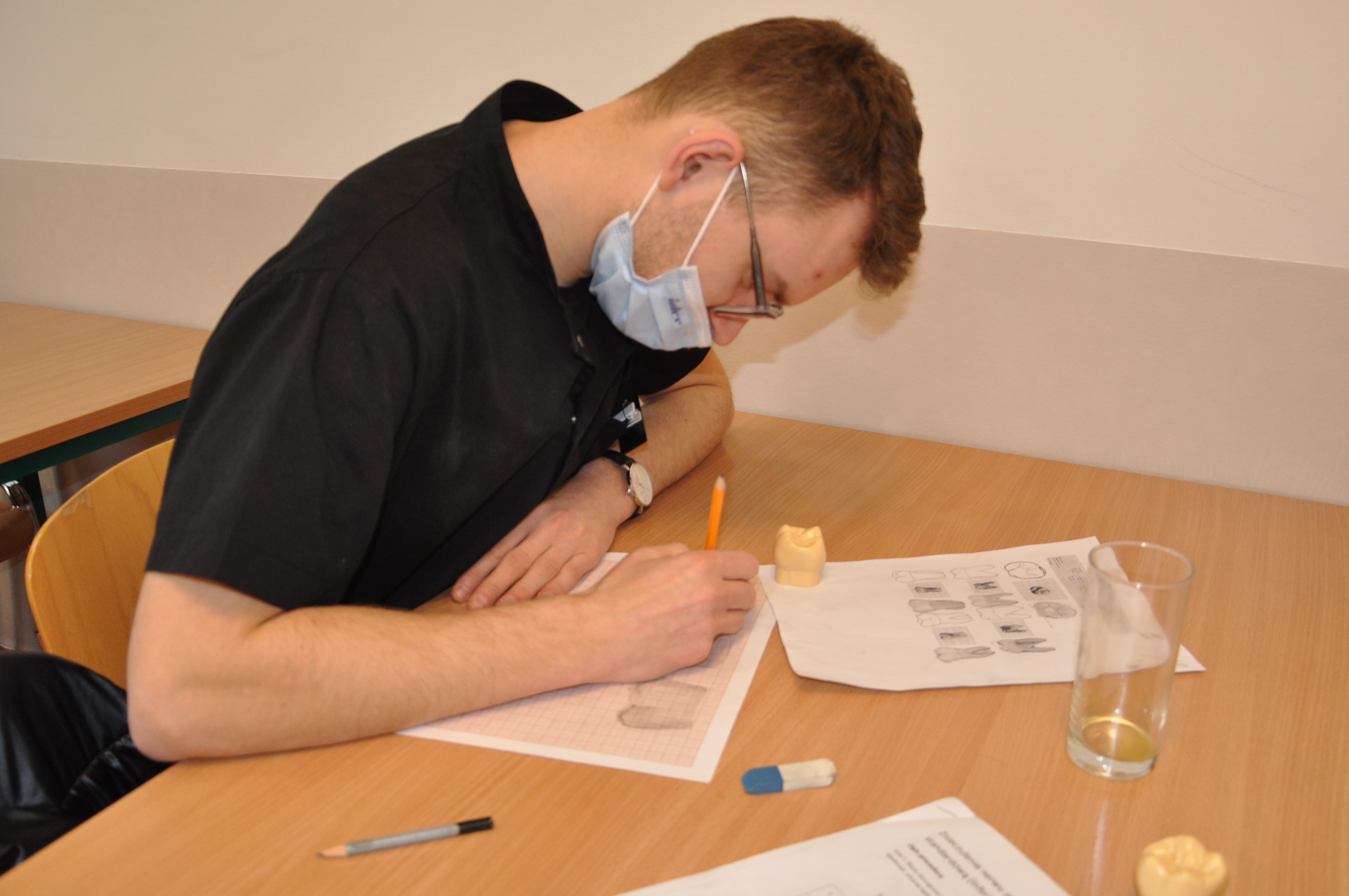 Podczas zawodów sprawdzono również wiedzę uczestników dotyczącą rentgenodiagnostyki stomatologicznej – test przygotowała prof. Ingrid Różyło-Kalinowska. Oceny zabiegów odtwórczych dokonał dr Jarosław Sobieszczański, prof. nadzw., a prawidłowego przebiegu procedury znieczulenia – dr Katarzyna Kot. Umiejętność odwzorowania morfologii pierwszego zęba trzonowego szczęki została oceniona przez 4-osobową komisję.