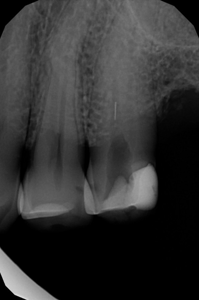 Ryc. 13. Zdjęcie rentgenowskie zęba 25 wykonane po usunięciu narzędzia.