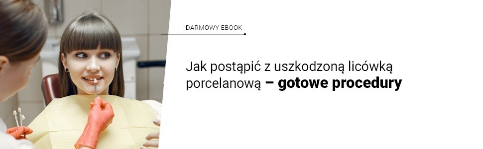 Co zrobić w przypadku uszkodzonej licówki porcelanowej? Specjalnie dla Ciebie przygotowaliśmy kolejny ekspercki e-book po pobrania. Znajdziesz w nim praktyczne wskazówki w postaci gotowych procedur postępowania właśnie w tej sytuacji.