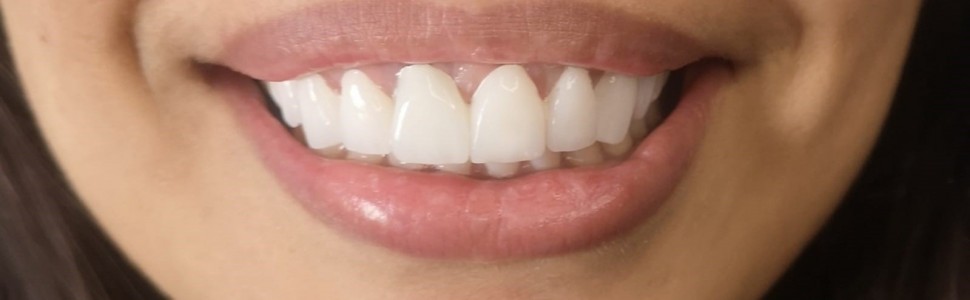 Jednym z najważniejszych wyzwań w tym przypadku było ukrycie szarawego koloru, metalowego łącznika implantu, który był widoczny przez koronę cyrkonową. Aby ukryć szarość łącznika, zastosowano opaker kompozytowy. Wszystkie zastosowane tutaj techniki w połączeniu z cementem do licówek PANAVIA™ Veneer