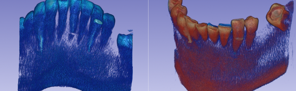 Film 1. Ząb 31 po urazie, rendering CBCT. Film wykonany w programie 3D Slicer.