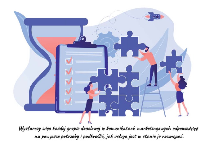 Możemy mieć tutaj kilka różnych grup docelowych, do których trafi całkowicie inny przekaz, ponieważ ich potrzeba lub problem jest całkowicie inny, np.: