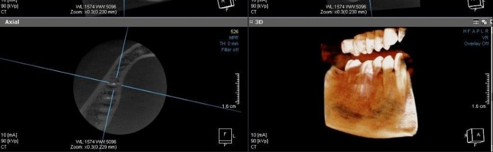 Jednym z wyzwań podczas leczenia endodontycznego są złamane narzędzia w systemie kanałowym. Nie zawsze jest możliwe usunięcie odseparowanego narzędzia bez nadmiernego opracowania zębiny zęba, co znacząco osłabia jego mechanikę. W pracy przedstawiono opis przypadku ponownego leczenia kanałowego dolnego zęba trzonowego z pozostawieniem złamanych narzędzi w kanałach.