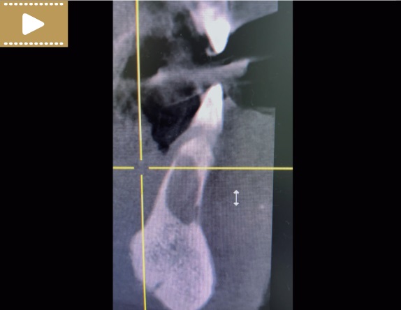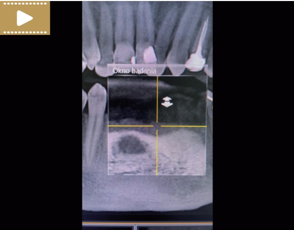 Film 3. CBCT płaszczyzna strzałkowa, zęby 31 i 41 (kwiecień 2021 r.).