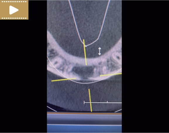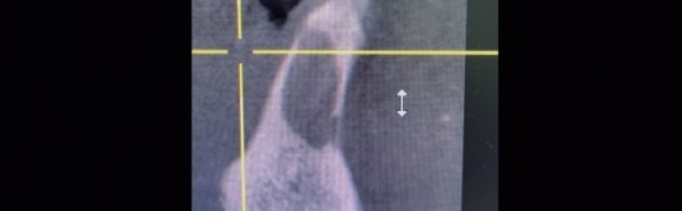 Film 1. CBCT przed rozpoczęciem leczenia endodontycznego zębów 31 i 41, płaszczyzna czołowa (kwiecień 2021 r.).