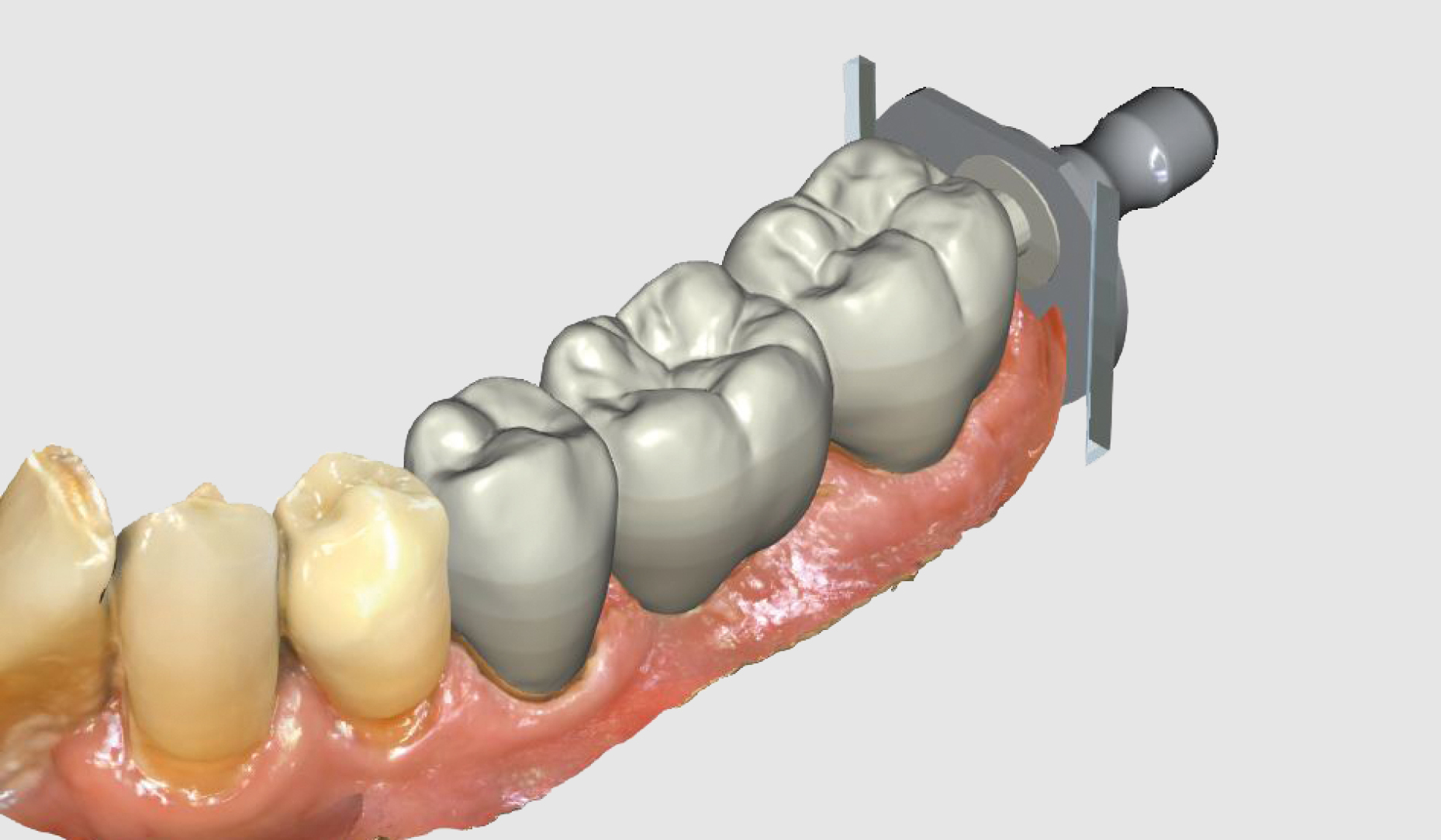 Ryc. 6. Ze względu na jasny odcień zębów w okolicy guzków, uzupełnienie na etapie projektu zostało umieszczone dość wysoko w wielowarstwowym bloczku z tlenku cyrkonu KATANATM.