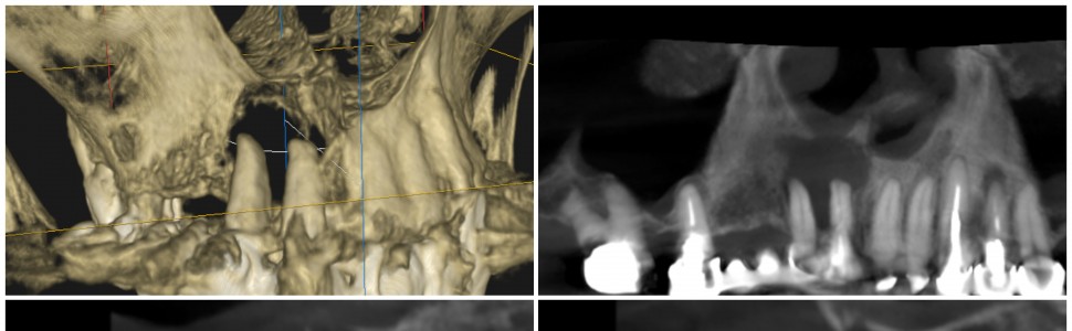 Leczenie endodontyczne zęba 12 i 11 z rozległą zmianą okołowierzchołkową