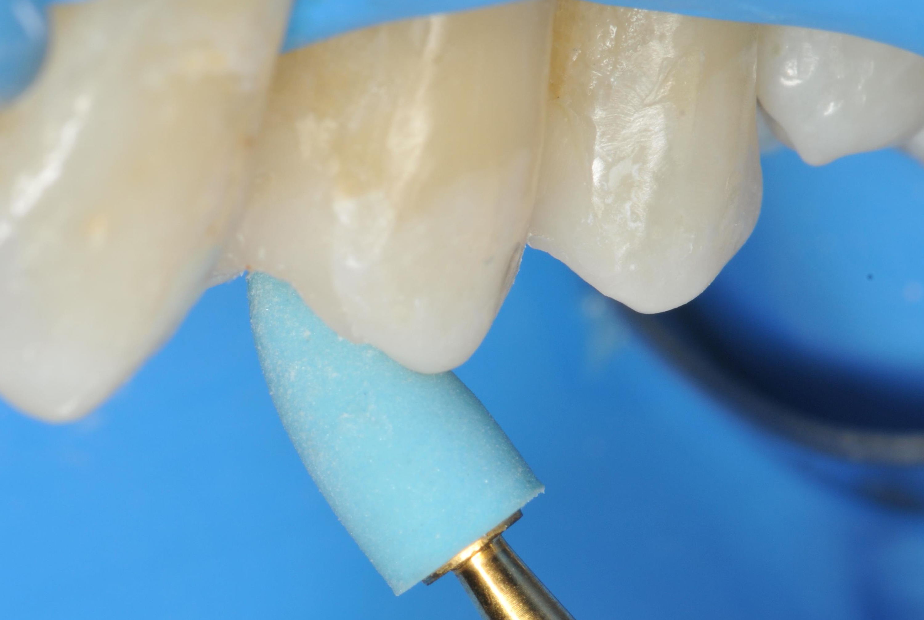 Następnie użyto Medium OptiDisc™ do wykończenia odbudów przy niskiej prędkości (ryc. 12).