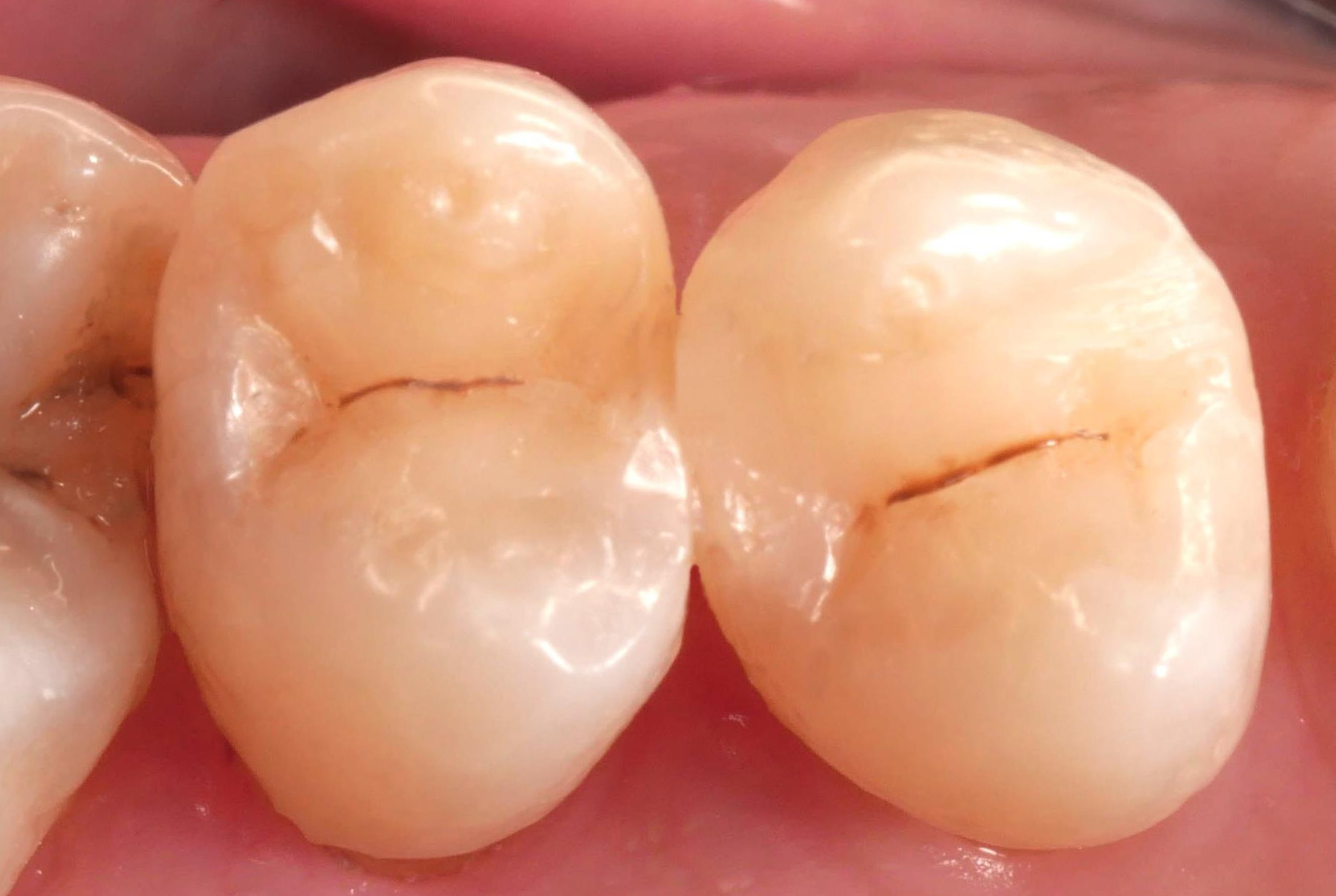 65-letni pacjent zgłosił się z istniejącymi, nieszczelnymi wypełnieniami kompozytowymi, które wymagały wymiany w celu usunięcia zmian próchnicowych i odbudowy struktury zęba (ryc.1).