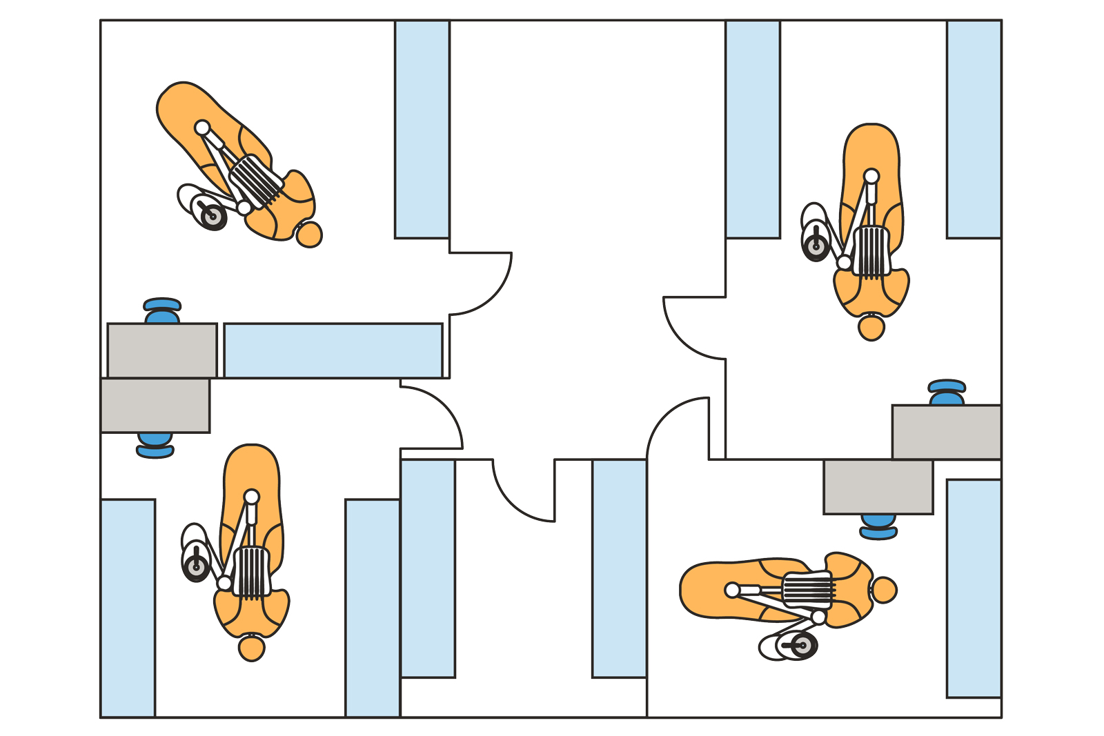 Mnożymy też ilość kosztów – każdy gabinet zawiera zduplikowane narzędzia, materiały i akcesoria, które przecież nie są używane cały czas, ale są na miejscu, gdyby pojawiła się taka potrzeba. A co, gdy personel przeoczy sytuację, gdy w danym gabinecie przez dłuższy czas nie wykonuje się danych procedur? Niektóre materiały ulegają przedawnieniu i nadają się tylko do utylizacji. Więc tak naprawdę nie płacimy za to co jest potrzebne, ale też za to, co znajduje się w zapasie. Pamiętajmy też, że powielanie dużej zabudowy meblowej dla każdego gabinetu, to kolejne wydatki. Jednocześnie większa przestrzeń na przechowywanie oznacza potrzebę korzystania z większych pomieszczeń, a tym samym wyższe koszty najmu.