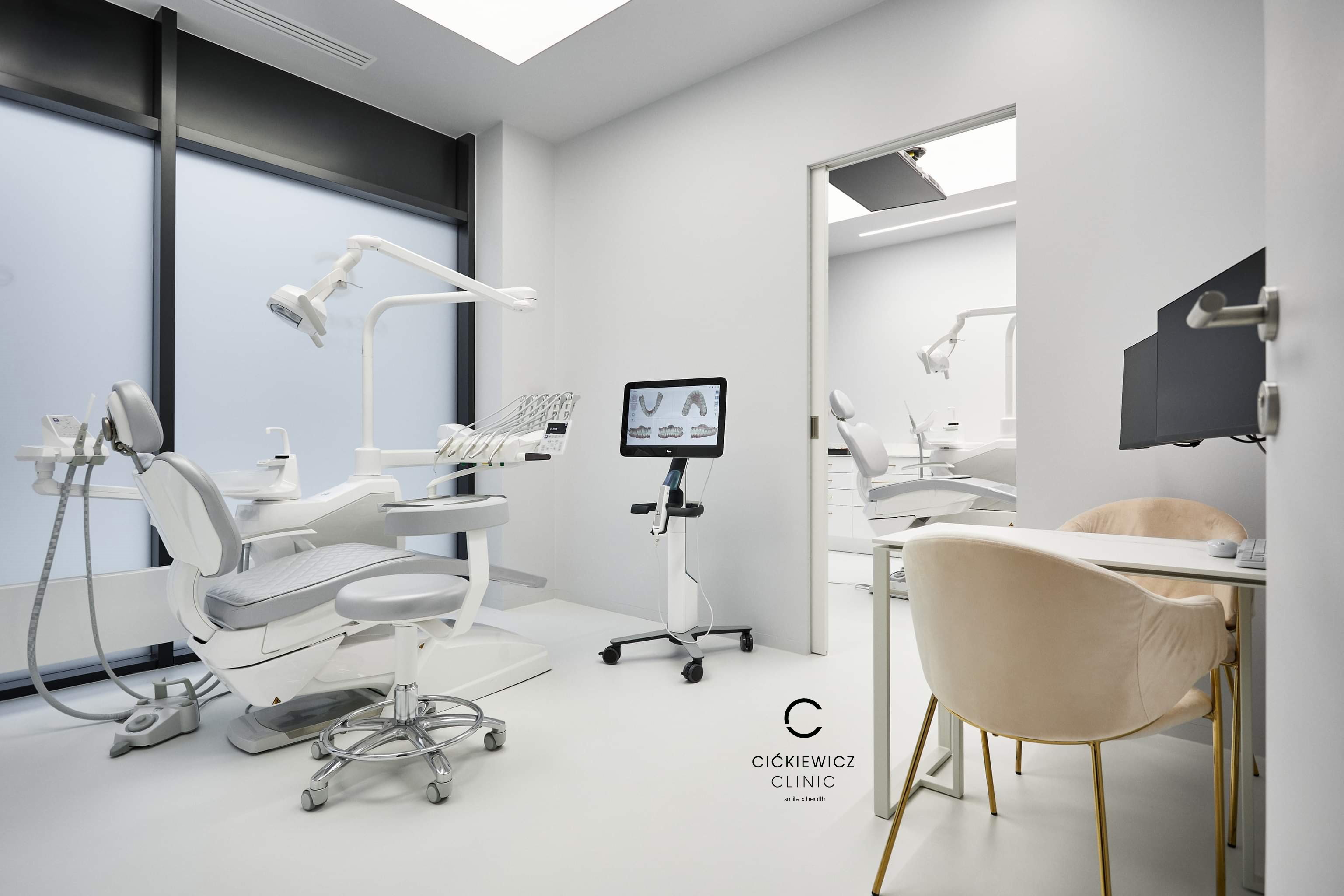 Nowe technologie, to także źródło udogodnień i rozrywki dla pacjenta w poczekalni oraz podczas wizyty u stomatologa, higienistki czy fizjoterapeuty. W naszym przypadku minimalistyczne wnętrza i doznania pacjenta to wynik działań Anny Krasnodębskiej – Cićkiewicz, która zajmowała się ich planowaniem z projektantem oraz generalnym wykonawcą. Dziś odpowiada za działania PR i Marketing, współpracując ze znanymi osobami oraz firmami. Wprowadza na rynek stomatologiczny świeże podejście, którym podkreśla, że działania marketingowe nie powinny dotyczyć odpowiednich zabiegów z zakresu stomatologii, a holistycznego podejścia do zdrowia. Dbanie o dietę, aktywność fizyczną, profilaktyka mają ogromny wpływ na zdrowie jamy ustnej, ale również na zdrowie całego organizmu. Na swoich kanałach Social Media pokazujemy, jak takie działania wyglądają (Instagram: anna_cickiewicz, cickiewiczclinic) – dodaje n.med. specj. ortod.lek-dent. Maciej Cićkiewicz.