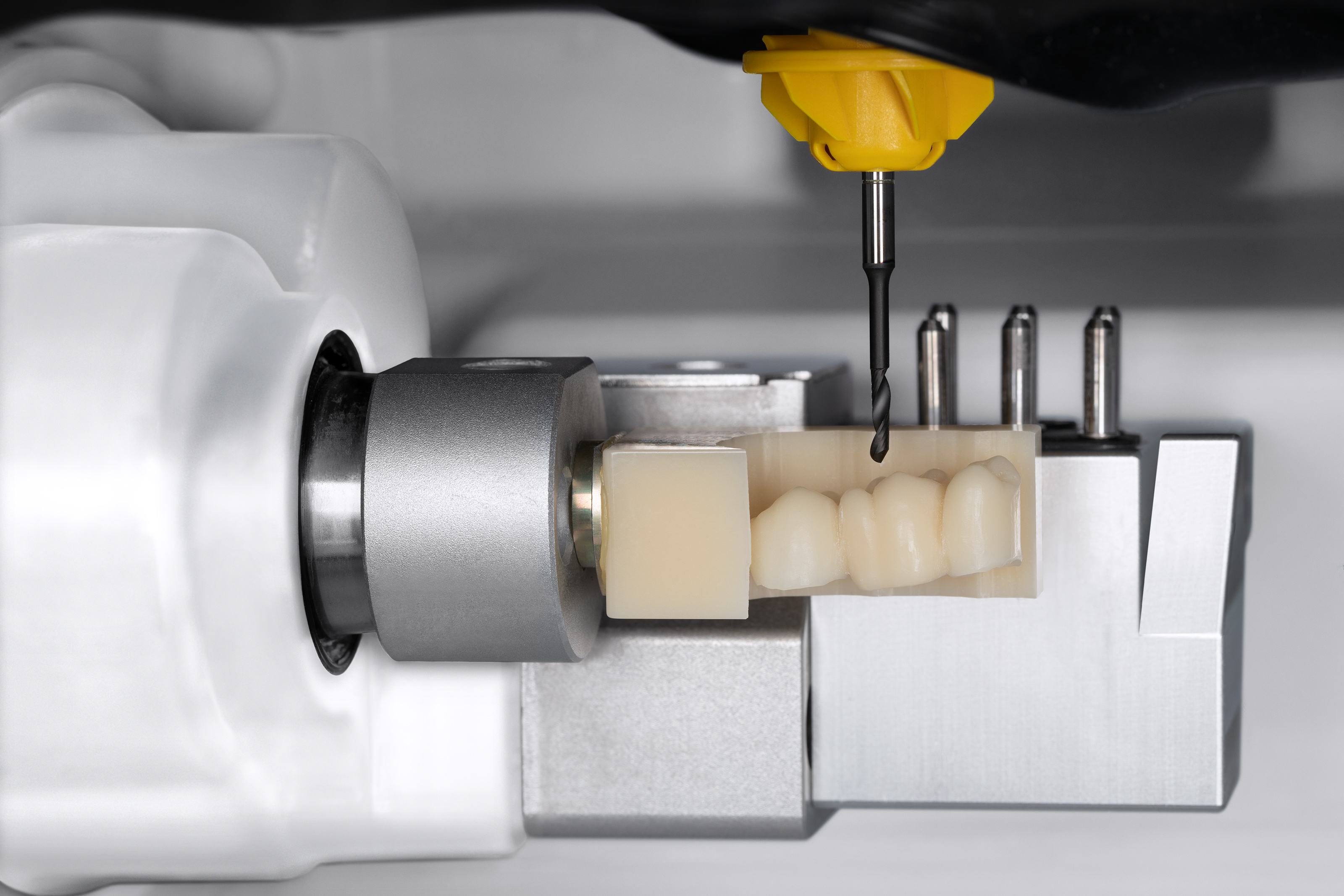 E4 zapewnia maksymalną swobodę. Urządzenie można łączyć z preferowanym skanerem wewnątrzustnym, dowolnym oprogramowaniem CAD oraz materiałami dopasowanymi do potrzeb konkretnego pacjenta. E4 stanowi serce cyfrowego przepływu pracy, umożliwiając wykonanie precyzyjnych uzupełnień protetycznych, gotowych do zastosowania podczas tej samej wizyty, w trakcie której wykonano skan wewnątrzustny – bez konieczności czasochłonnej obróbki końcowej.