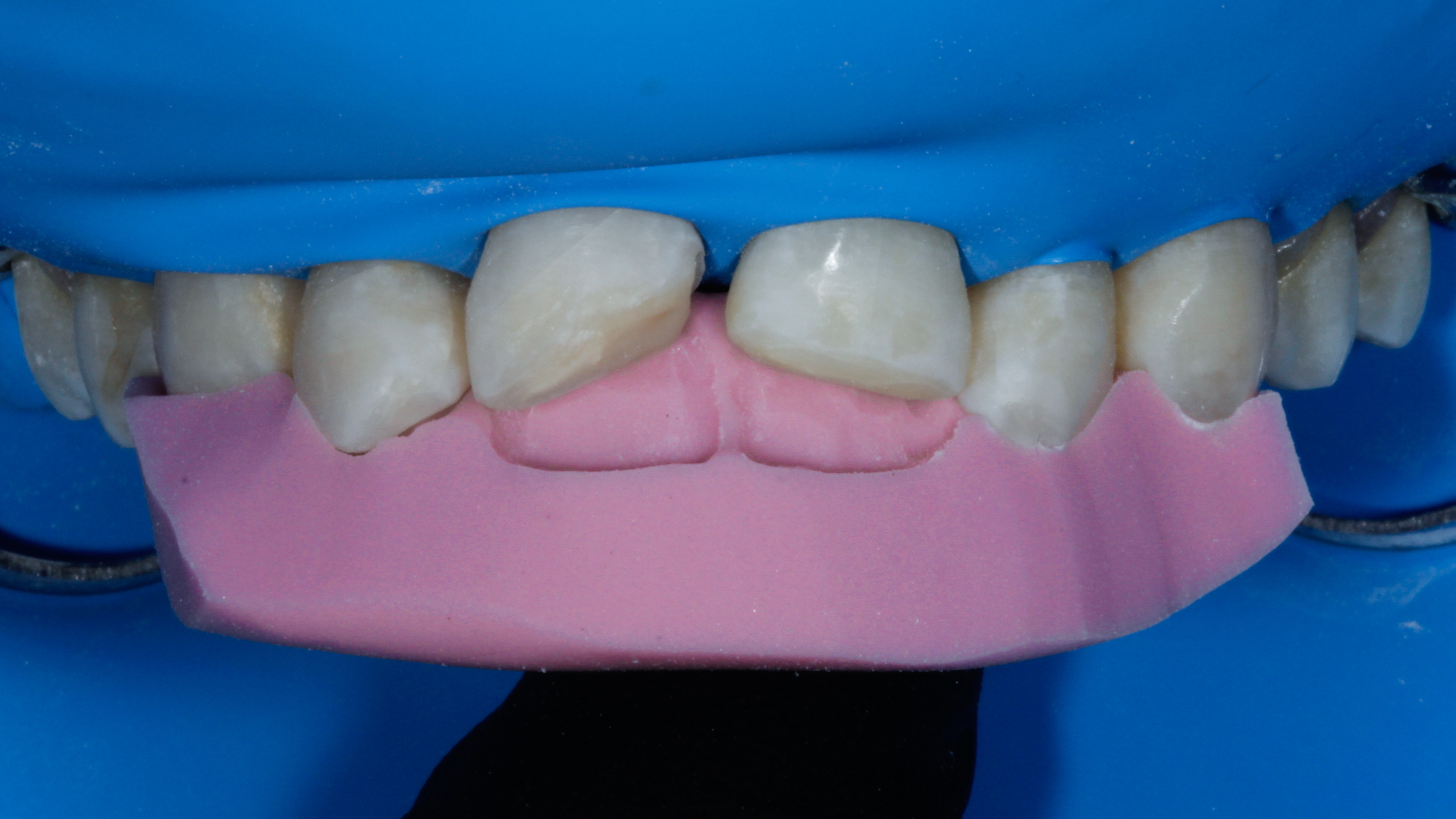 Po zakończonej preparacji przymierzono indeks silikonowy celem oceny jego pasywnego przylegania do zębów. (ryc. 7)