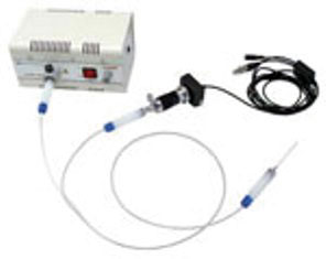 Endoskop jest zbudowany z elastycznej sondy zawierającej światłowód oraz z przewodu transportującego obraz, pokrytego ochronną tuleją przymocowaną do uchwytu. Sonda ma gładką powierzchnię i może się zginać pod kątem 30°. Soczewka umożliwia obrazowanie pola o średnicy 1 mm. Włókna optyczne przewodzące obraz są otoczone pierścieniem większych włókien światłowodowych. Płukanie i odsysanie przeprowadza się za pośrednictwem dwóch kanalików. Przewód nawadniający doprowadza płyn do pola operacyjnego, natomiast przewód ssący jest poddany ujemnemu ciśnieniu, dzięki czemu odciąga ciecz wraz z zanieczyszczeniami powstałymi w czasie pracy. W niektórych rodzajach endoskopów w uchwycie i sondzie znajduje się pusty kanalik, do którego podczas zabiegu mogą być wprowadzone mikrokleszcze lub inne urządzenia (1, 4).