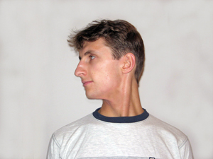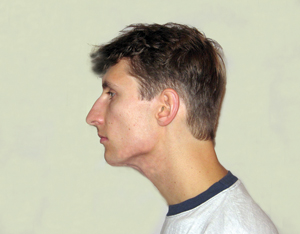 6. Pogłębianie i znoszenie lordozy szyjnej przez wyciąganie brody do przodu i chowanie jej do tyłu (6 razy w obu kierunkach na przemian) (ryc. 3a, 3b).