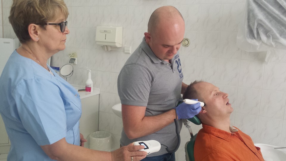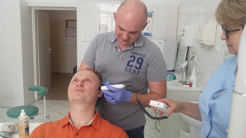 - wykona badanie stawu skroniowo-żuchwowego przy użyciu głowicy Doppler,