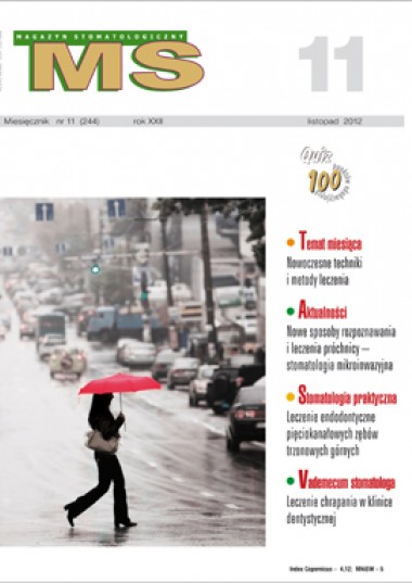 Nowoczesne techniki i metody leczenia to temat miesiąca listopadowego numeru „Magazynu Stomatologicznego”. Znajdą w nim Państwo prace naukowe, mające jednak wymowę praktyczną – otwierający numer artykuł poświęcony metodzie przestrzennego odwzorowania warunków zgryzowych, pracę omawiającą wpływ metody abrazji powietrznej na siłę połączenia systemu wiążącego ze szkliwem i zębiną, a także opis stworzenia komputerowego 3D modelu żuchwy stanowiącego podstawę do symulacji ubytków kostnych oraz pomiaru naprężeń i odkształceń kości poddanej obciążeniom. Zawarte w dziale opisy przypadków są poświęcone leczeniu zaburzeń czynnościowych układu ruchowego narządu żucia po leczeniu ortodontycznym oraz wykorzystaniu tapingu w terapii dolegliwości bólowych towarzyszących dysfunkcji ssż.