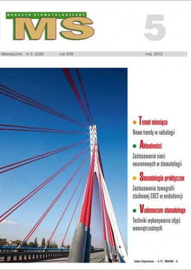 Swoistym łącznikiem między pracą a czasem wolnym niech się stanie majowy numer „Magazynu Stomatologicznego” tym razem w całości, już po raz trzeci (tak powoli powstaje tradycja), poświęcony zastosowaniu radiologii w leczeniu stomatologicznym. Temat miesiąca nosi frapujący tytuł „Nowe trendy w radiologii”, a przedstawiają je wybitni znawcy tej problematyki z różnych polskich uczelni medycznych. Sami się Państwo przekonają, że numer majowy pisma obfituje w interesujące prace na temat najnowszych sposobów obrazowania radiologicznego w procesie diagnostycznym w różnych dziedzinach stomatologii w porównaniu z rentgenodiagnostyką konwencjonalną.